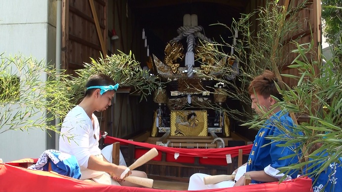 昨年は宵宮が中止になったり、 宮で初めて行う為の段取りの関係で 蔵前での竹割りは実施しませんでしたが、 2年ぶりに蔵出し前の露払いとして 竹割り実施です。 一本しかないのでここでは割りませんが。 |