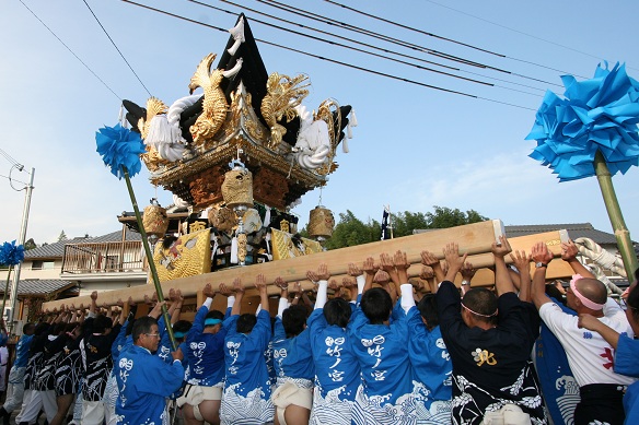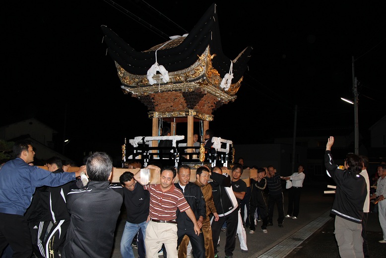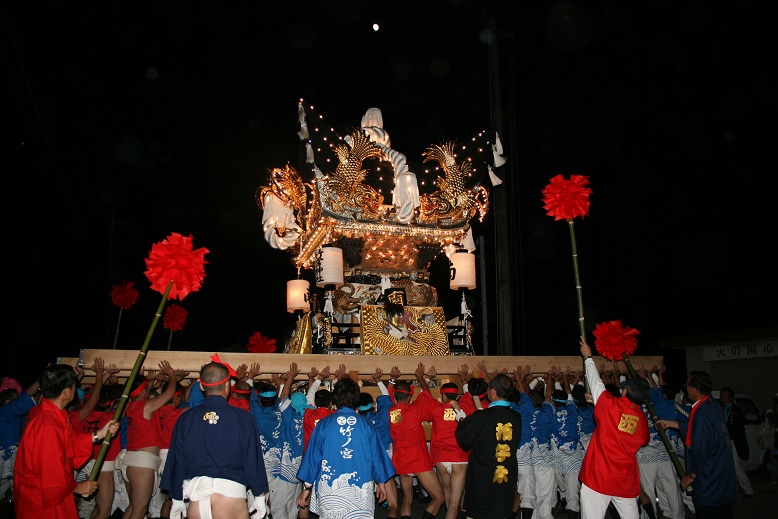 蔵出しに続いて南山田公民館前でも、 南山田屋台の勢いはいつも以上でした。 ここでも連続2回の差し上げ・・・ とまでは行きませんでしたが、 終わった後、 「今日はイケる。」と 何人かが口にしていたのも頷けました。 |